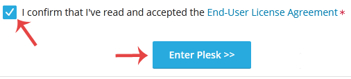 Final Step: Scroll down to the end of the page, read and accept the End-User License Agreement and then click on the Enter Plesk button.