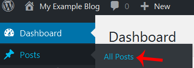 2. Under the dashboard menu, hover your mouse over Posts and click on All Posts.