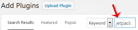 3. In the Search Plugin box, enter the name of the plugin you wish to install, such as Jetpack, and press enter.
