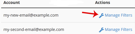 3. Under Filters by Users, You can see all of your existing email accounts, Click on Manage Filters next to the appropriate one.