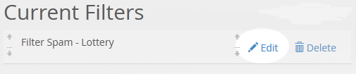 4. Under Current Filters, You can see all of your existing filters, Click on Edit next to the appropriate one.