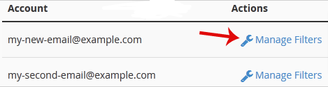 3. Under Filters by Users, You can see all of your existing email accounts, Click on Manage Filters next to the appropriate one.