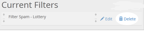 4. Under Current Filters, You can see all of your existing filters, Click on Delete next to the appropriate one.