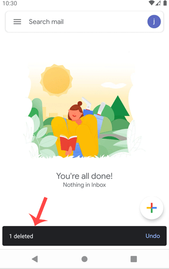 You will get the message Email Deleted. If you want to restore the email, you will need to tap on Undo shortly after it has been deleted. Otherwise, it will be permanently lost.