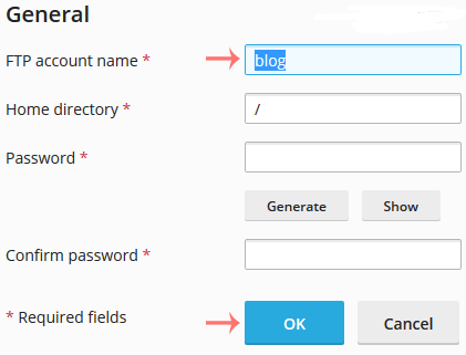 6. In the FTP Account name field, enter your new FTP name and then confirm with OK.