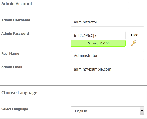 - Admin Username: Your new Serendipity username (for security reason do not use the Administrator or the Admin username.)