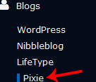 4. On the left side of your screen, you should locate the Blogs category. Click on it and then click on the Pixie link that will appear.