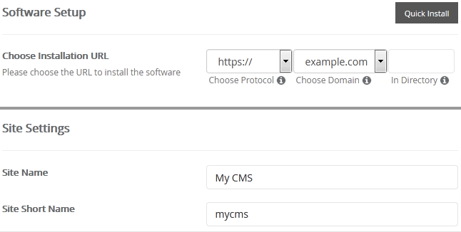 - Choose Installation URL: Choose the appropriate protocol/domain. Inside the "In Directory" field, should you want to install this in a directory, i.e. example.com/directory, enter the directory name? Otherwise, leave it blank to install in your main domain, i.e. example.com