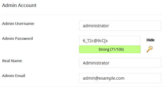 - Admin Username: Your new Nucleus username (for security reason do not use the Administrator or the Admin username.)