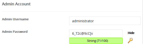 - Admin Username: Your new HTMLy username (for security reason do not use the Administrator or the Admin username.)