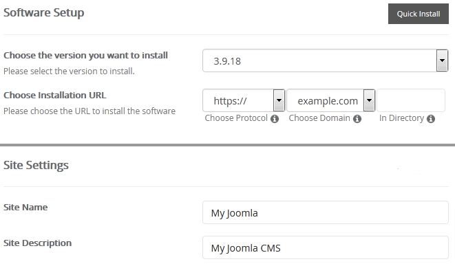 - Choose Installation URL: Choose the appropriate protocol/domain. Inside the "In Directory" field, should you want to install this in a directory, i.e. example.com/directory, enter the directory name. Otherwise, leave it blank to install in your main domain, i.e. example.com