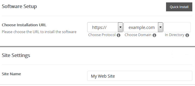 • Choose Installation URL: Choose the appropriate protocol/domain. Inside the "In Directory" field, should you want to install this in a directory, i.e., example.com/directory, enter the directory name. Otherwise, leave it blank to install in your main domain, i.e., example.com