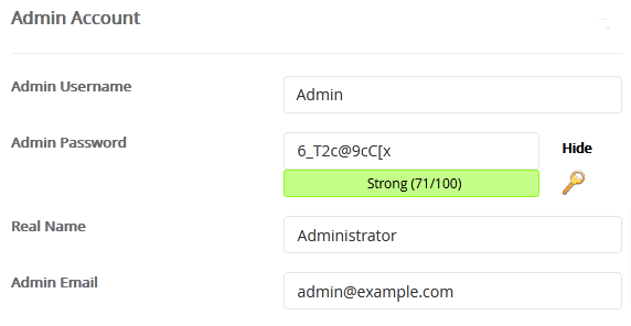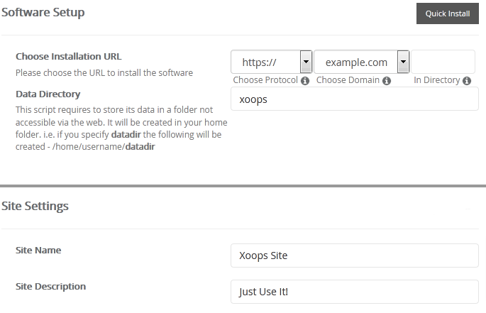 - Admin Username: Your new Xoops username (for security reason do not use the Administrator or the Admin username.)