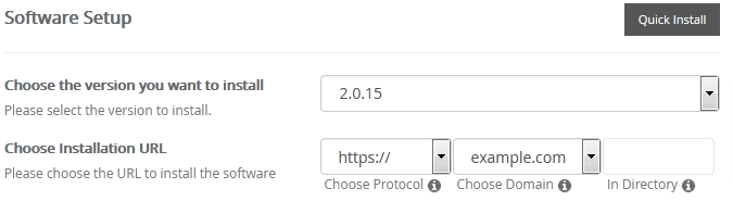 - Choose Installation URL: Choose the appropriate protocol/domain. Inside the "In Directory" field, should you want to install this in a directory, i.e., example.com/directory, enter the directory name. Otherwise, leave it blank to install in your main domain, i.e., example.com