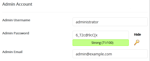 - Admin Username: Your new Zikula username (for security reason do not use the Administrator or the Admin username.)