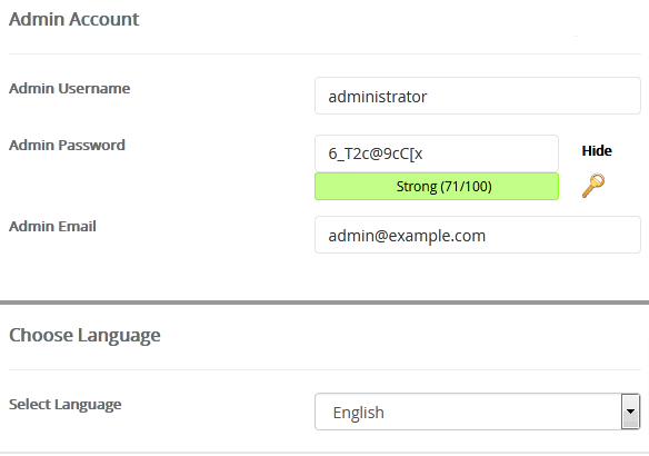 - Admin Username: Your new Website Baker username (for security reason do not use the Administrator or the Admin username.)