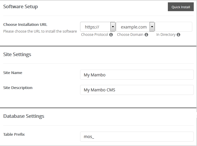 - Site Name: Enter the name of your website, such as Mambo.