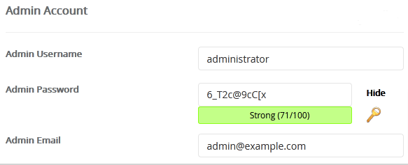 - Admin Username: Your new ProcessWire username (for security reason do not use the Administrator or the Admin username.)