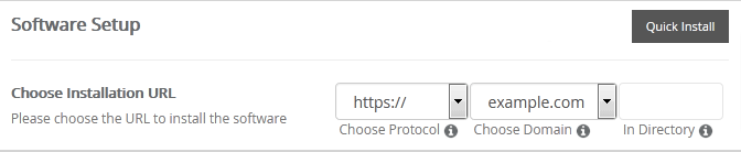 - Choose Installation URL: Choose the appropriate protocol/domain. Inside the "In Directory" field, should you want to install this in a directory, i.e., example.com/directory, enter the directory name. Otherwise, leave it blank to install in your main domain, i.e., example.com