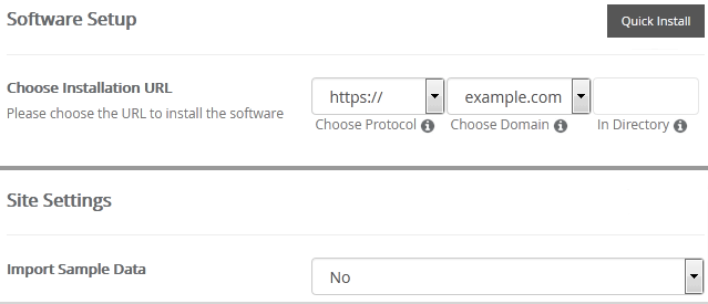 - Choose Installation URL: Choose the appropriate protocol/domain. Inside the "In Directory" field, should you want to install this in a directory, i.e., example.com/directory, enter the directory name. Otherwise, leave it blank to install in your main domain, i.e., example.com