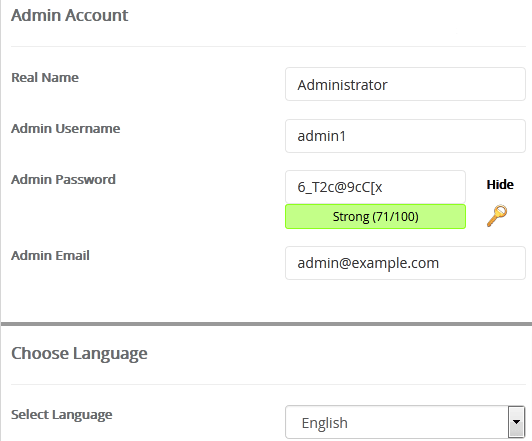 - Admin Username: Your new PluXml username (for security reason do not use the Administrator or the Admin username.)