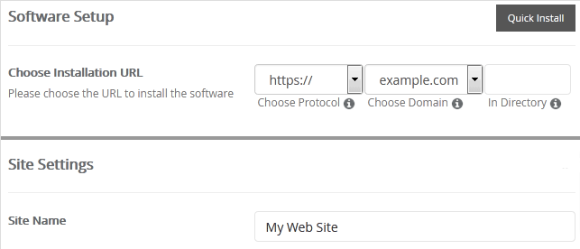 - Choose Installation URL: Choose the appropriate protocol/domain. Inside the "In Directory" field, should you want to install this in a directory, i.e., example.com/directory, enter the directory name. Otherwise, leave it blank to install in your main domain, i.e., example.com