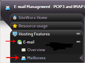 3. Click the E-mail menu item and then click on the Mailboxes option.