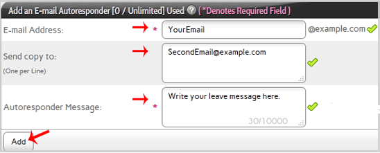 4. In the E-mail Address field, enter the email address on which you want to enable autoresponder. If you want to enable auto responder on [email protected], enter Your-Email.