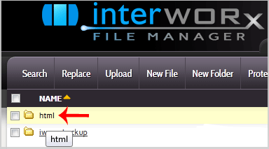 3. Navigate to the directory where you want to upload your files to. For example, should you wish to upload your file to the public HTML folder, you need to go to /html first. On the left side, you can see a list of directories. Double click on the HTML folder.