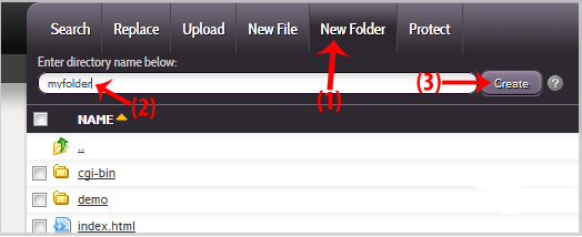5. In the Enter directory name below field enter your folder name like myfolder. Then click on the Create button.