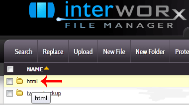 3. Navigate to the directory where you want to upload your files. For example, should you wish to upload your file to the public HTML folder, you need to go to /Html first. On the left side, you can see a list of directories. Double Click on the HTML folder.