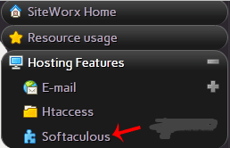 2. Under SiteWorx Menu, click the Hosting Features menu item if it is not already open.