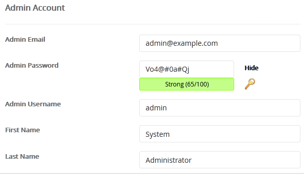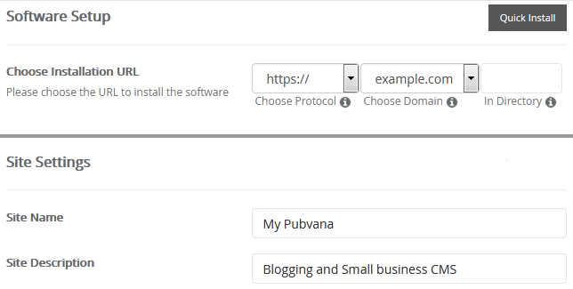 - Admin Username: Your new Pubvana username (for security reason do not use the Administrator or the Admin username.)