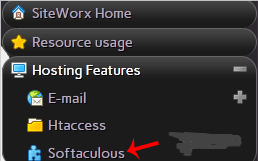 2. Under SiteWorx Menu, click the Hosting Features menu item if it is not already open.