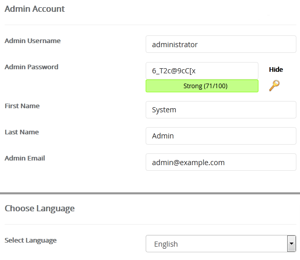 - Admin Password: Use a strong password.