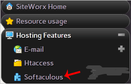 2. Under SiteWorx Menu, click the Hosting Features menu item if it is not already open.