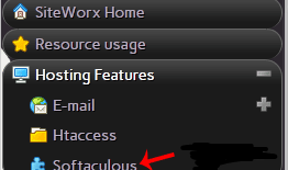 2. Under SiteWorx Menu, click the Hosting Features menu item if it is not already open.
