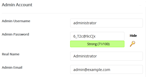 9. Under the Admin Account field, enter the following information: