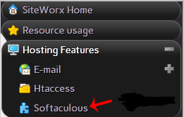 2. Under SiteWorx Menu, click the Hosting Features menu item if it is not already open.