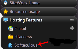 2. Under SiteWorx Menu, click the Hosting Features menu item if it is not already open.