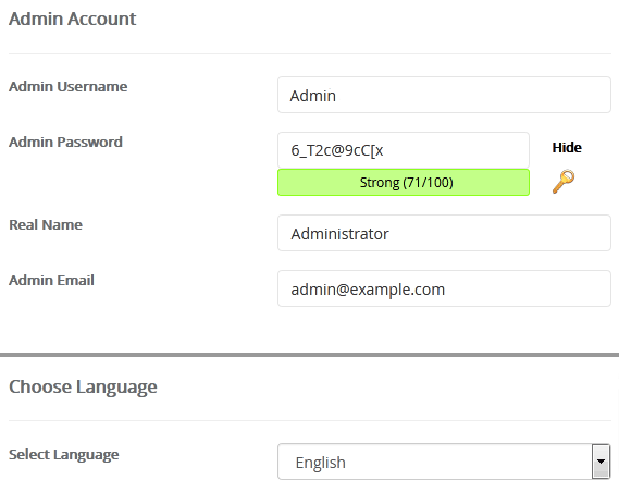 - Admin Email: Your e-mail address. (Useful for administrator account password reset, notification, etc.)