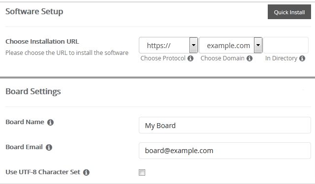 - Choose Installation URL: Choose the appropriate protocol/domain. Inside the "In Directory" field, should you want to install this in a directory, i.e., example.com/directory, enter the directory name. Otherwise, leave it blank to install in your main domain, i.e., example.com