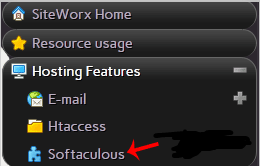 2. Under SiteWorx Menu, click the Hosting Features menu item if it is not already open.