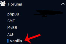 5. On the left side of your screen, you should locate the Forums category. Click on it and then click on the Vanilla link that will appear.