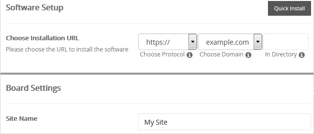 - Choose Installation URL: Choose the appropriate protocol/domain. Inside the "In Directory" field, should you want to install this in a directory, i.e., example.com/directory, enter the directory name. Otherwise, leave it blank to install in your main domain, i.e., example.com.