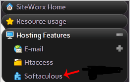 2. Under SiteWorx Menu, click the Hosting Features menu item if it is not already open.