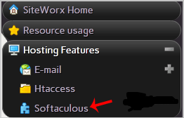 2. Under SiteWorx Menu, click the Hosting Features menu item if it is not already open.
