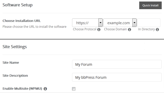 - Admin Username: Your new bbPress username (for security reason do not use the Administrator or the Admin username.)