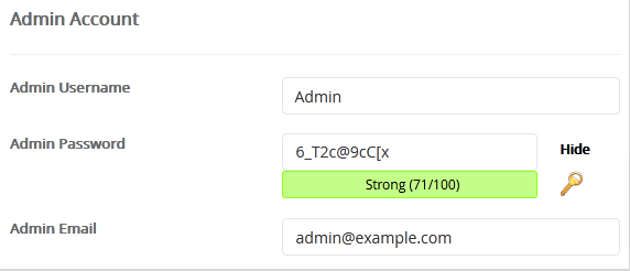 - Admin Email: Your e-mail address. (Useful for administrator account password reset, notification, etc.)