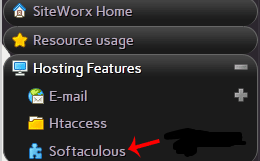 2. Under SiteWorx Menu, click the Hosting Features menu item if it is not already open.